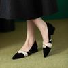 Französische Retro-Perlen-Dickabsatz-Einzelschuhe Damen Frühling und Herbst neu einpedalig mattes Lichtmaul vielseitig niedriger Absatz Damenschuhe Tide