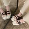 Französische Retro Mary Jane Schuhe Damen 2025 Frühling neue dicke Ferse eckige Spitze Schleife kleine Lederschuhe mit einzelnen Schuhen