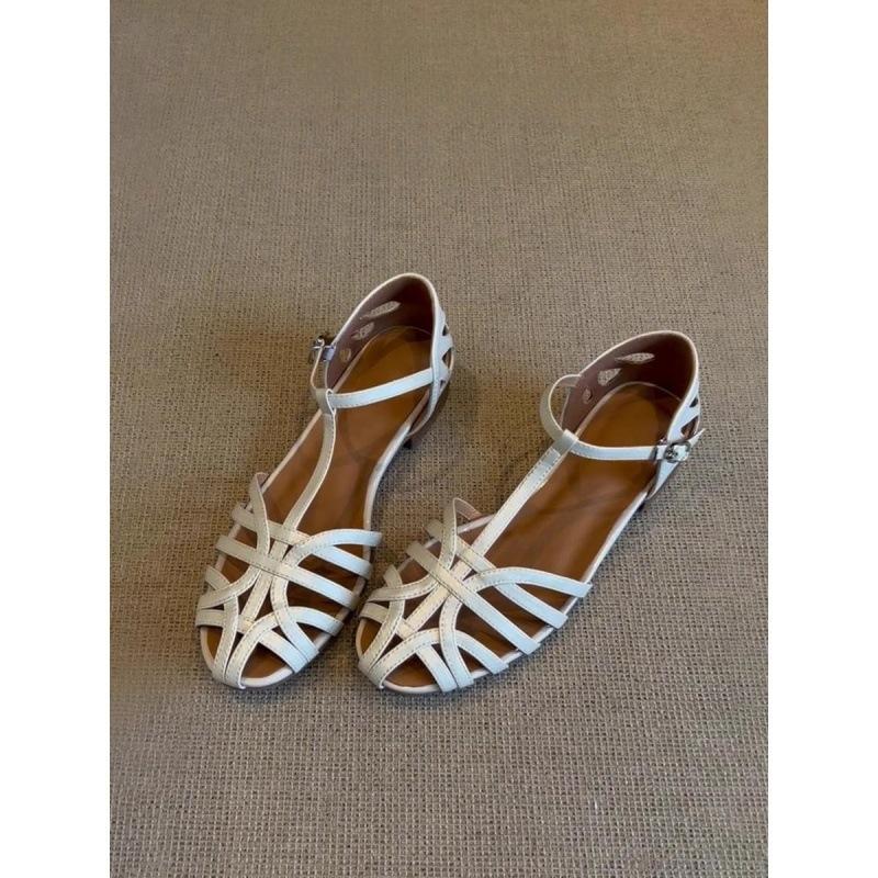 Gewebte Retro-Hohl-Atmungsaktive Sandalen Damen 2025 Sommer Neue Flachboden-Freizeit-Vielseitige Ein-Wort-Schnallenriemen Römerschuhe