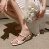 Französische süße Schleife quadratischer Kopf Keilabsatz Sommer 2025 neue hohe Absätze Ein-Wort-Sandalen vielseitige Oberbekleidung Damen