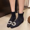 Französische vielseitige kurze Stiefel Damen 2025 Herbst und Winter kleine neue Schuhe nackte Stiefel dünne eckige Schnalle kleine Innenhöhe Strass Koreanisch