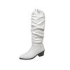 Stiefel mit V-Ausschnitt Damen 2025 Herbst neue plissierte Stiefel zum Raffen spitz zulaufender dicker Absatz aber kniehohe Reiterstiefel