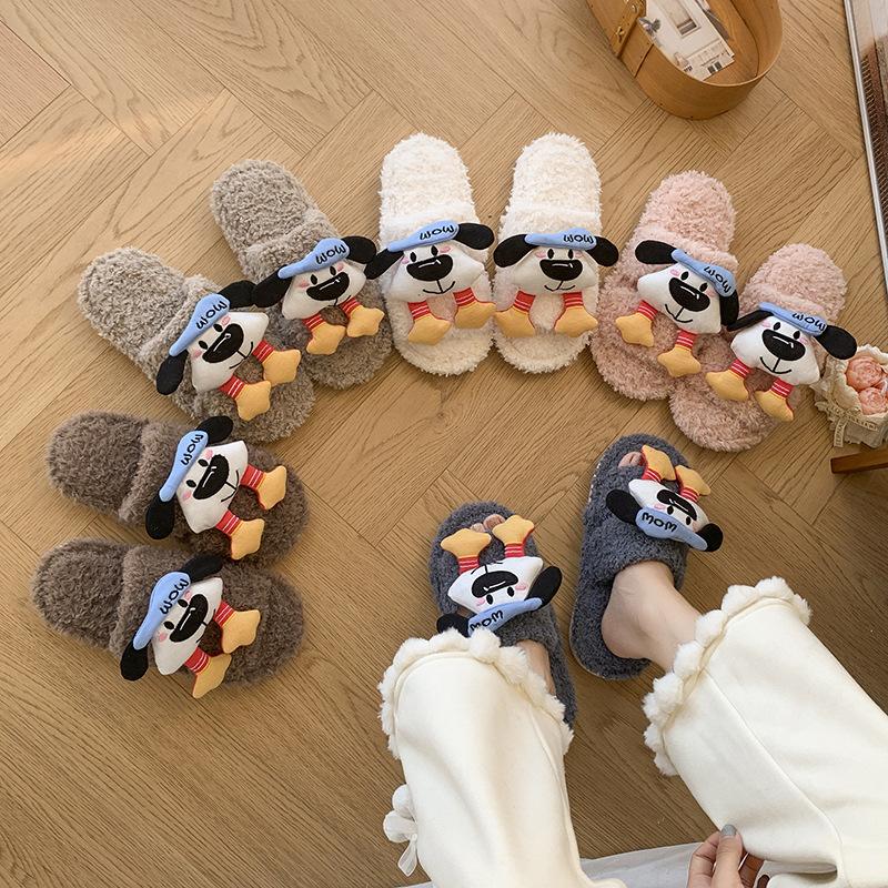 Niedliche Cartoon flauschige Hausschuhe Damen 2025 Herbst und Winter neu weich niedlicher Welpe kann Fleece tragen warme Baumwollhausschuhe