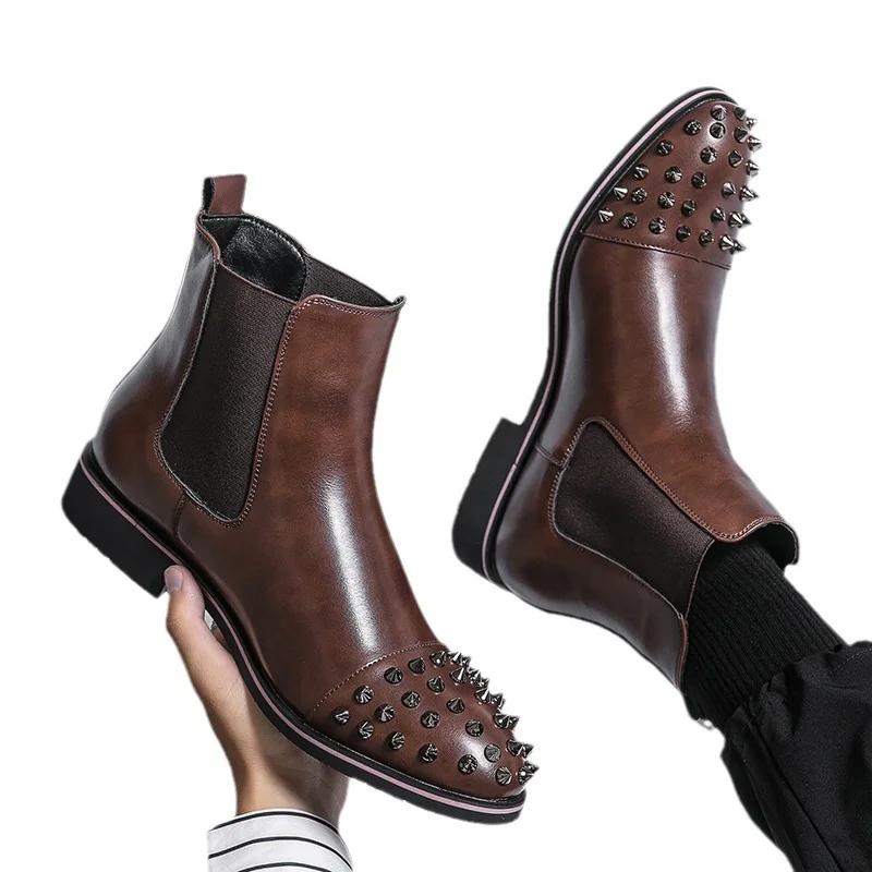 2024 Herbst Neue genietete Mid-Top-Stiefel Retro Spitzleder Schuhe Herrenstiefel Große Größe 38-48