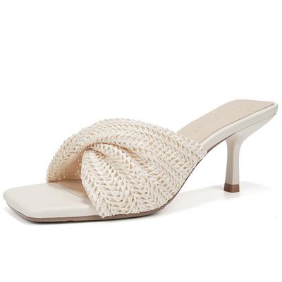 Damen Sandalen Mules Absatz Eckige Zehenpartie Hochhackige Sandalen Frau Sommer Schuhe Webdesign Hohe Absätze Stiletto 6.5 CM