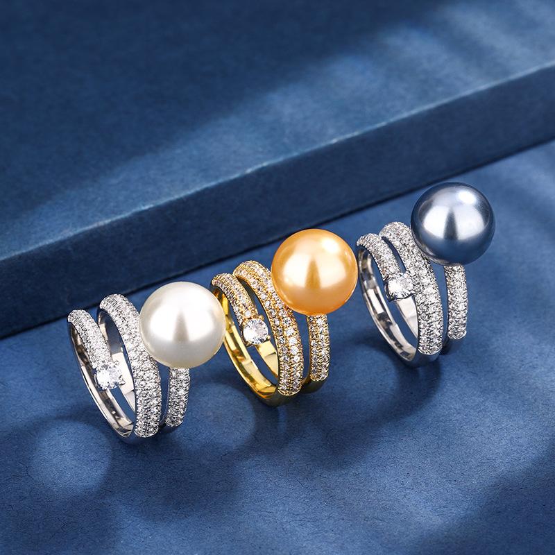 Schmuck Kupfer Vergoldet Simulationsperle Temperament Persönlichkeit Damenring Ring 12Mm