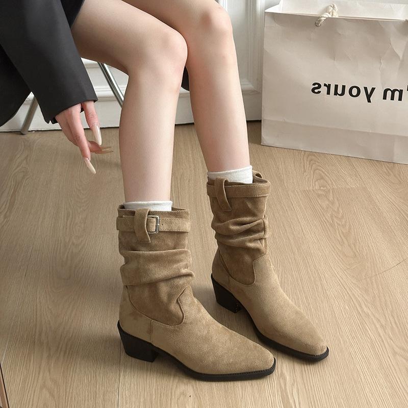 Plissierte Stiefel mit Fell Damen Sommer 2025 Neu Innen erhöhend Kleine Merad Western-Cowboystiefel Einzelstiefel