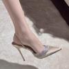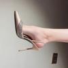 Neue leichte Seide spitzer Bohrer Speichel High Heels dünner Absatz Tasche Kopf sexy Wort mit Sandalen Frauen 2025 Champagner