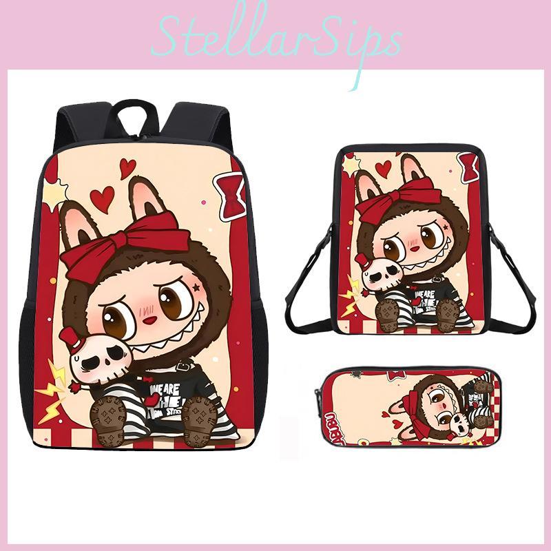 Das Labubu Weihnachts-Cartoon-Rucksack-Set umfasst eine Schultasche, eine Umhängetasche und ein Federmäppchen, gefertigt aus strapazierfähigem Oxford-Gewebe.. Mit atmungsaktiven, leichten und verschleißfesten Materialien bietet es ausreichend Stauraum und reduziert die Belastung für junge Schüler.. Ideal für den Schulgebrauch, sorgen die Luftpolstergurte des Rucksacks für Komfort.. Zur Pflege mit einem feuchten Tuch abwischen.