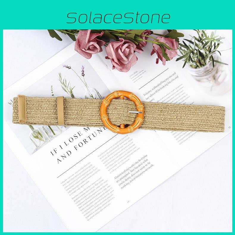 This woven style women's belt features a round buckle made of durable plastic. Crafted with a braided design, it adds texture and visual interest to various outfits. The belt is suitable for beachwear, casual dresses, and summer outings, providing a stylish accent. It comes in multiple colors, including white, black, khaki, and multicolor,Easy to care for, wipe clean with a damp cloth to maintain its woven appearance.
