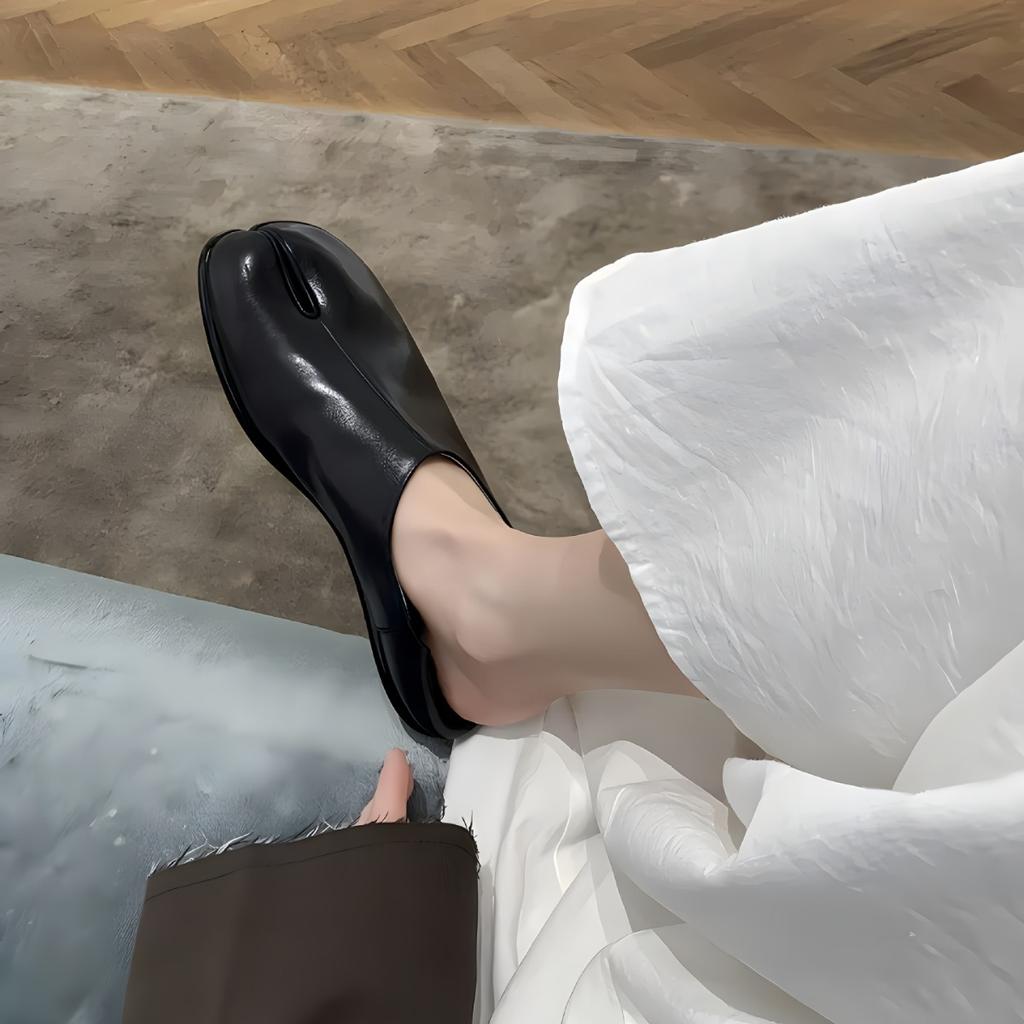 Rindslederversion~ Traubenmutter, die gleichen flachsohligen, flachmündigen, faulen Loafer, einpedalige Schweinsfuß-Zehenschuhe, Damen-Kleinlederschuh