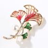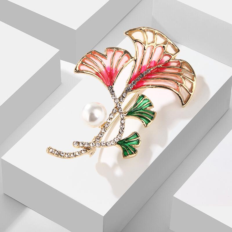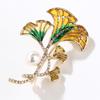 Light Luxury Exquisite Ginkgo Leaf Inlaid Zirconium Brooch Personalised Multi Leaf Pearl Pin Clothing Accessories Perfect Gift for Couples