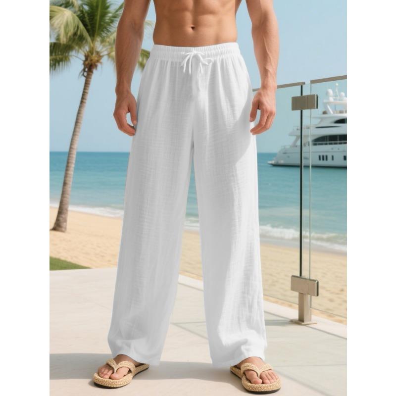 Mehrfarbige Leinenhose Locker Lässig Herren Atmungsaktiv Kordelzug Täglich Urlaub Gerade Hose