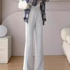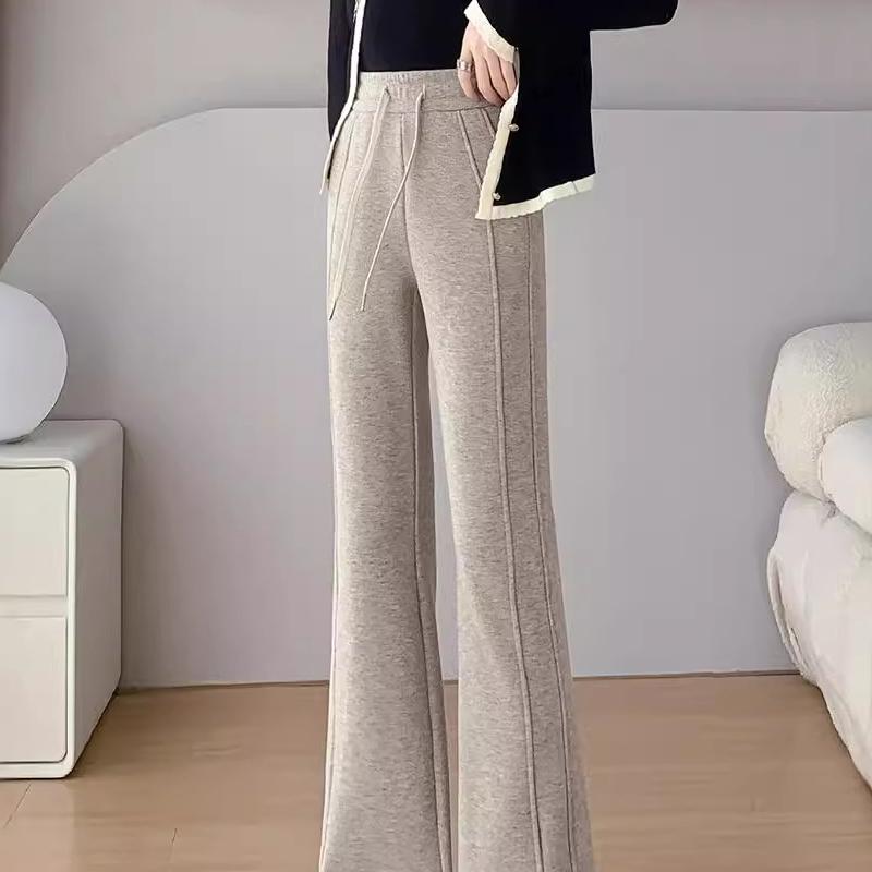 Fleecegefütterte Übergröße Kunstwolle Weitbeinige Hose Herbst Winter Neu Schlitzhose Gerade Schmale Version Leicht Ausgestellt Bananenhose für Damen
