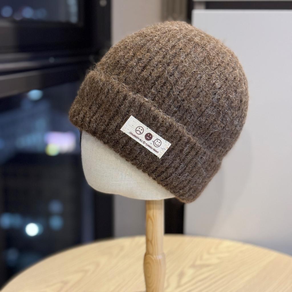 Korean Version Ins Smiling Face Wool Hat for Women Autumn and Winter New Thickened Warm Baotou Hat Showing Face Small Ear Protection Knitted Hat