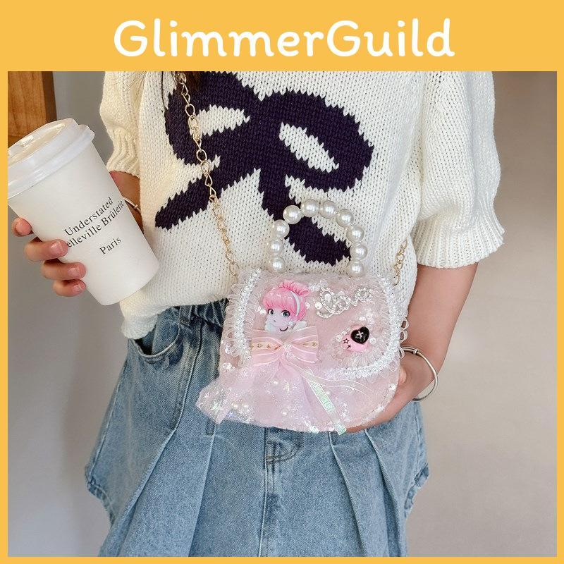Crossbody Bowknot Girls Bag Sparkly Cartoon Shoulder Bag With Pearl Chain Strap