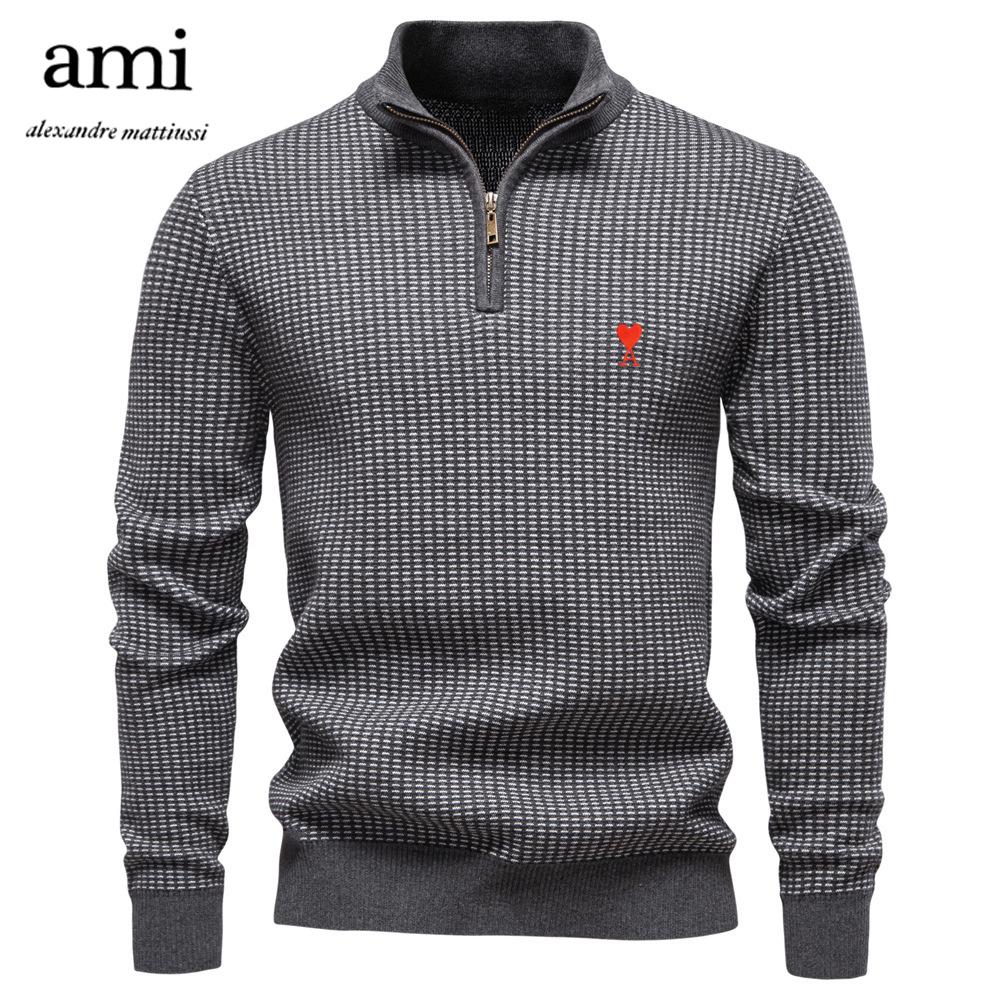 AMI 2025 Herbst und Winter Stickerei Neuer Herren Dicker Pullover Herren Halber Reißverschluss Stehkragen Business Casual Pullover