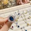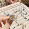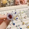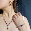 Kamellia Französisch Brillant Simulation Rubin Brautset, 18K Voll Diamantplattiert Elegante und Noble Ohrringe Offener Ring