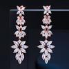 E0264 Lange Ohrringe mit Fransenblatt, Zirkonia-Ohrringe Hochzeitsaccessoires