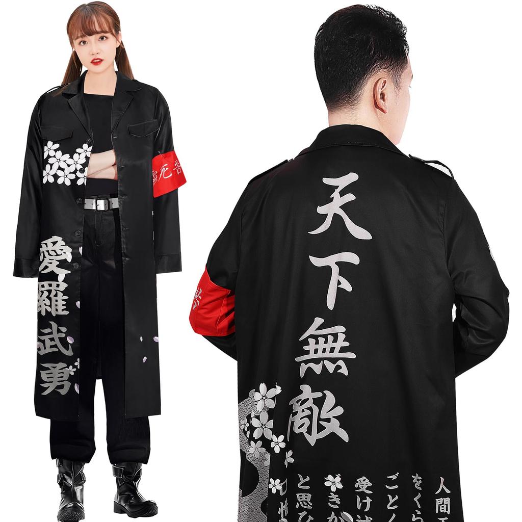 🔥 [I Love Bravery & Invincible] This long coat is a replica of the popular anime's kamikaze uniform design. The sides of the coat feature a powerful "dragon" and "I Love Bravery" design. The back reads "Invincible." The left arm reads "Invincible," and the right arm reads "I Am the Only One." Cherry blossoms are also scattered throughout, evoking the sense of chivalry and righteousness, while also creating a romantic feel.