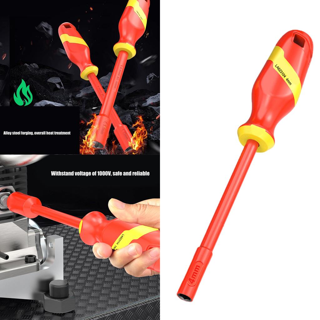 Hochspannungsisolierter Tieflochschraubendreher Isoliertes Handwerkzeug für Elektroarbeiten mit Sechskantschaft und rutschfestem Griff