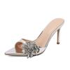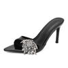 Feminin~ 2025 spitzer Strass-Blume Lackleder Ein-Wort-Slipper Damen Sommer Sexy Oberbekleidung Schwarze Stiletto-High Heels