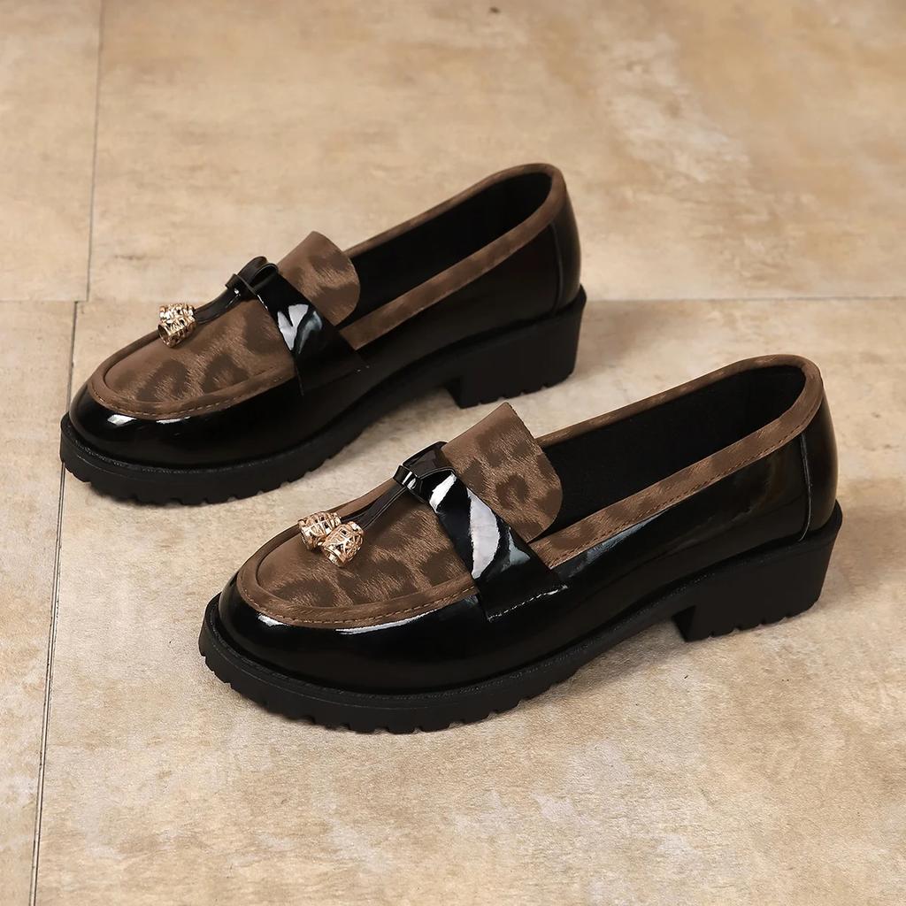Damen Übergröße Lässige Plateau Schuhe mit niedrigem Absatz 2025 Frühling und Herbst Mode Leopard Dekorativ Slipper zum Hineinschlüpfen.