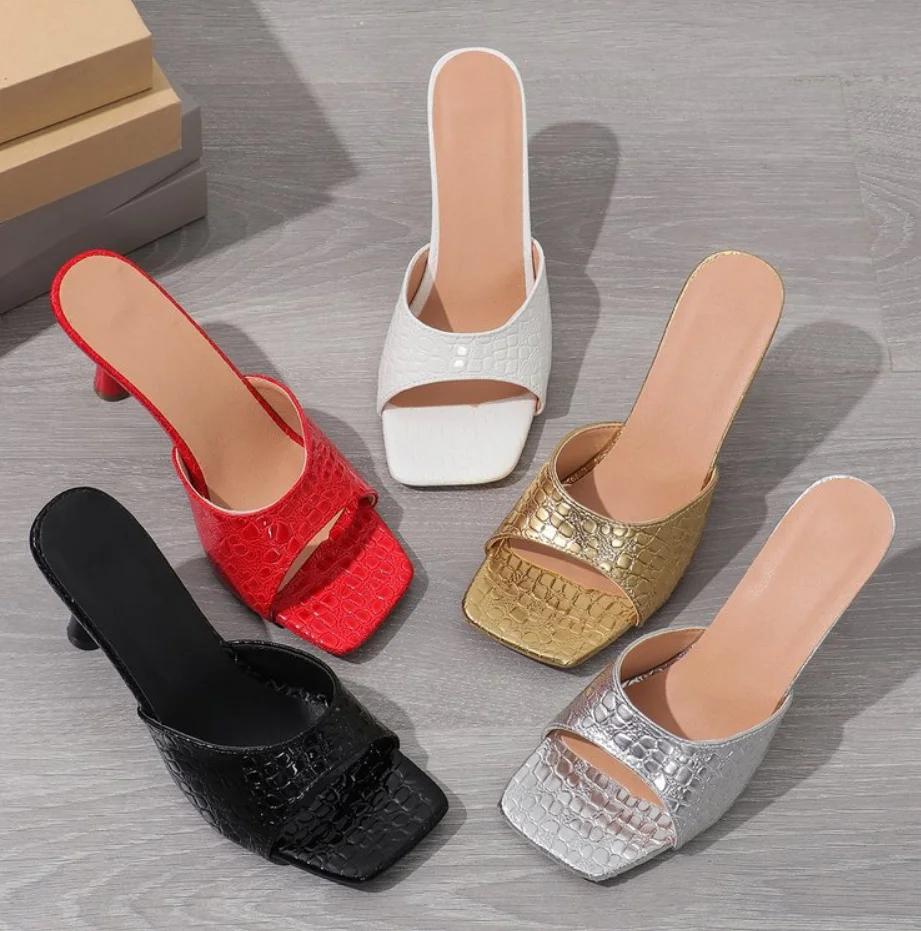 Neue Mode Sommer Damen Slipper Eckige Zehenpartie Damen Pantoletten Sexy Hohe Absätze Sandalen Weiblich Designer Frau Dinnerparty Schuhe