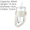 Strohhalm Wasserbecher Glas Einfacher Lässiger Kaffeebecher mit Deckel und Farbiger Bambusbecher Tragbares Gerades Trinkhalmglas
