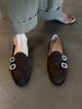 Schafsleder-Version~ retro schlichte Strass-Viereckschnalle Einzelne Schuhe Damen 2025 neue Mode macht nicht müde, Slipper zum Hineinschlüpfen