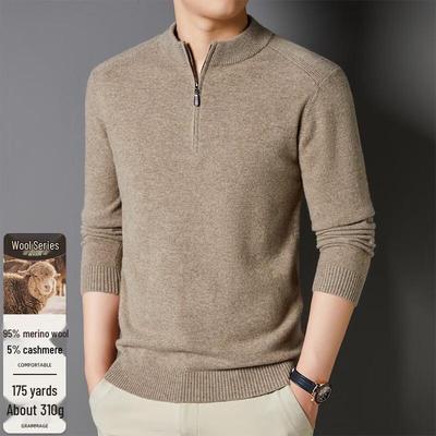Herren Pullover mit halbem Reißverschluss, 95% Wolle Kaschmir-Mischung