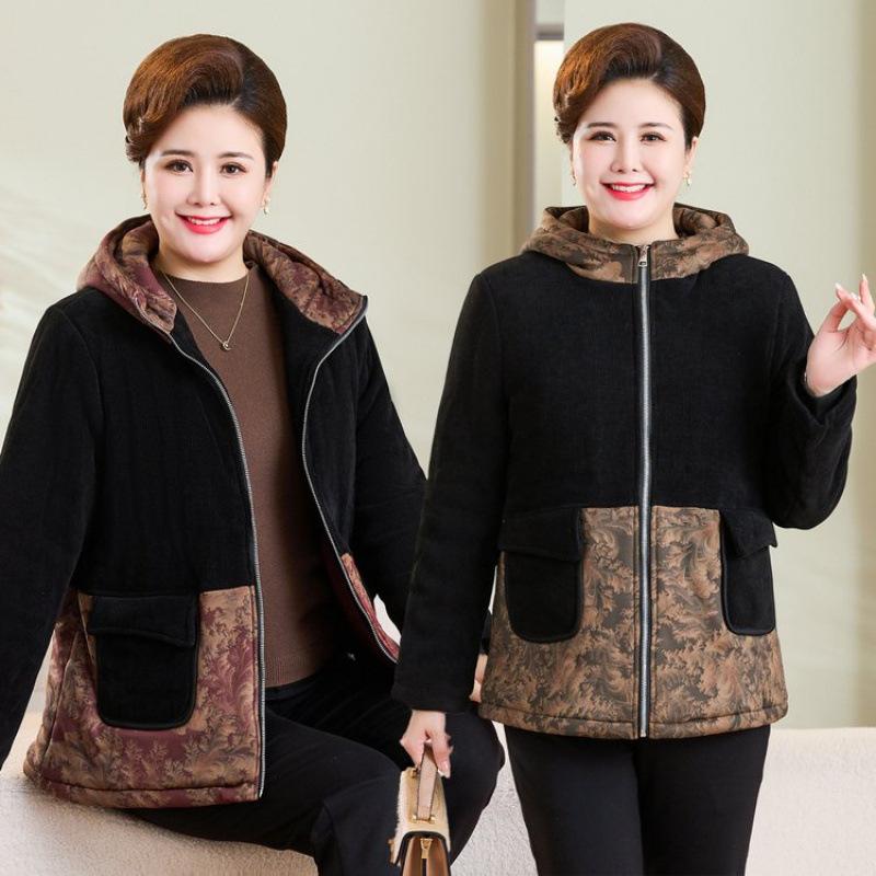 Fat cotton-padded clothes Winter clothes Fleece thickened jacket Fattened plus size cotton-padded jacket Hooded cotton-padded clothes