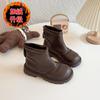 Girls' short boots 2025 autumn and winter new children's velvet warm short black leather boots women's treasure fashion Martin boots