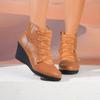 Damen Retro Plateau Keilabsatz Stiefeletten Herbst Winter Kreuzriemen Freizeitschuhe Frau Übergröße PU Leder High Heel Stiefel