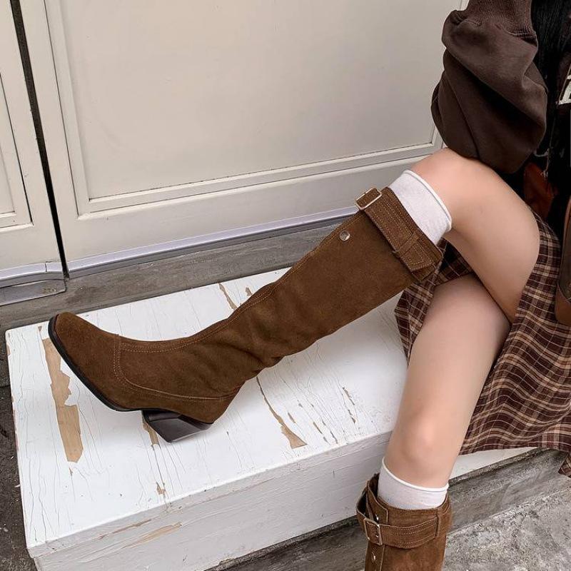 Herbst- und Winterleder Damenstiefel in Übergröße mittlerer Absatz runde Spitze vielseitige Damenlederstiefel Blockabsatz neue hohe Rindsleder Martin Boots