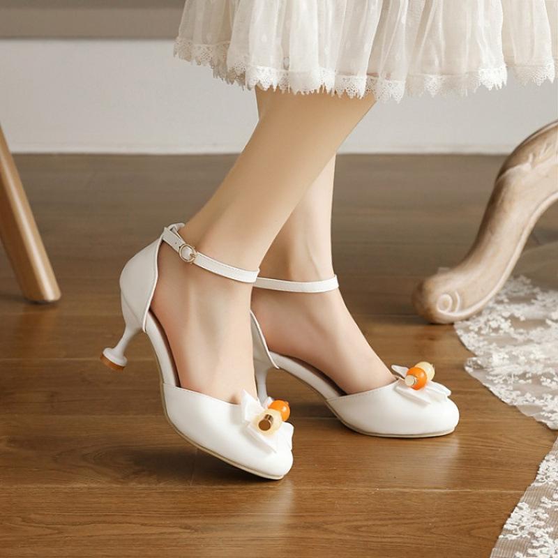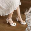 Sommerliche Mädchensandalen, mittelgroße Kinderschuhe, Prinzessinnensandalen mit hohem Absatz, rosa Lolita-Sandalen für kleine Mädchen und Studentinnen