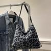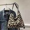 Simple large-capacity bag 2025 small fresh and fashionable leopard print plush tote bag atmospheric fluff shoulder bag women's bag