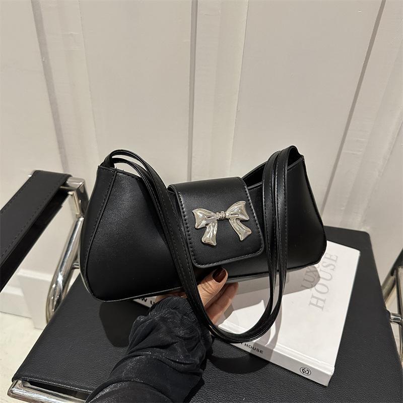 Gentle and fashionable texture bow shoulder bag women's 2025 spring and summer new versatile ins underarm bag small square bag