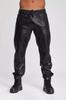 Jogginghose Herren Leder Schwarz Lammleder Sweatpants Handgefertigt Weiches Leder