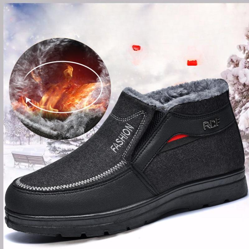 Winter Baumwollstiefel für Herren Warmes Fell Weiche Herren Plateau Schneestiefel Herren Stiefelette Winter Herren Sneaker Plus Freizeitschuhe Schwarz