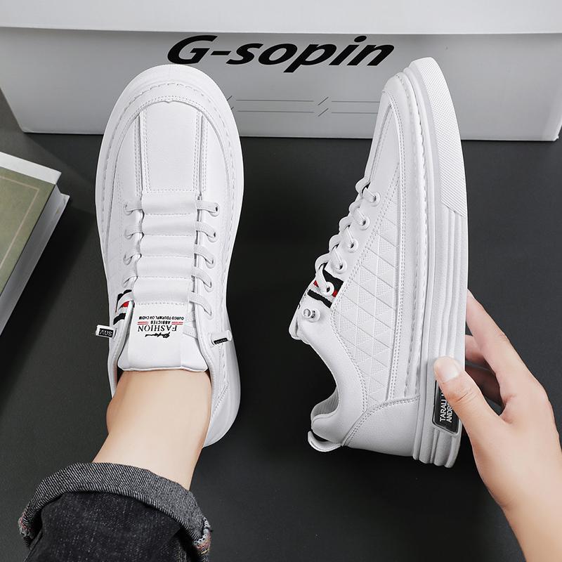 Herrenschuhe 2025 neu Frühling atmungsaktive Freizeitschuhe Herren Sportliche flache Schuhe vielseitige rutschfeste Trendschuhe kleine weiße Lederschuhe