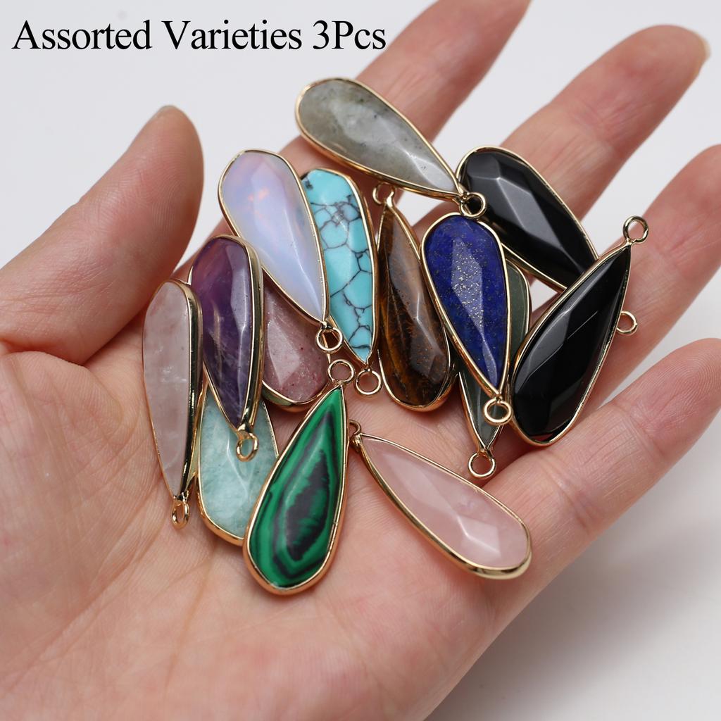 3Pcs, Faceted Natural Stone Crystal Lapis Lazuli Amethyst Gemstone Pendant, Boho Handmade Long Water Drop Charms for Jewelry Making DIY Crafts 13×35mm