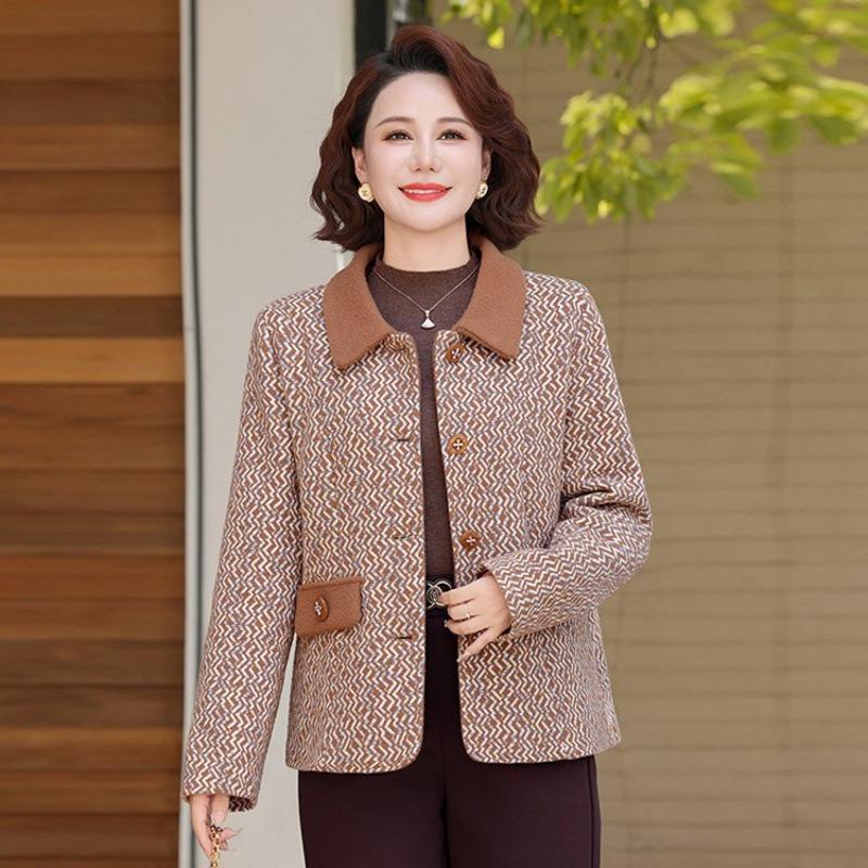 Autumn new fashion lapel jacket medium old woman loose age reduction spring and autumn short age reduction top