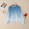 ZANZEA Damen Lässig Umlegekragen Farbverlauf Druck Locker Langarm Bluse
