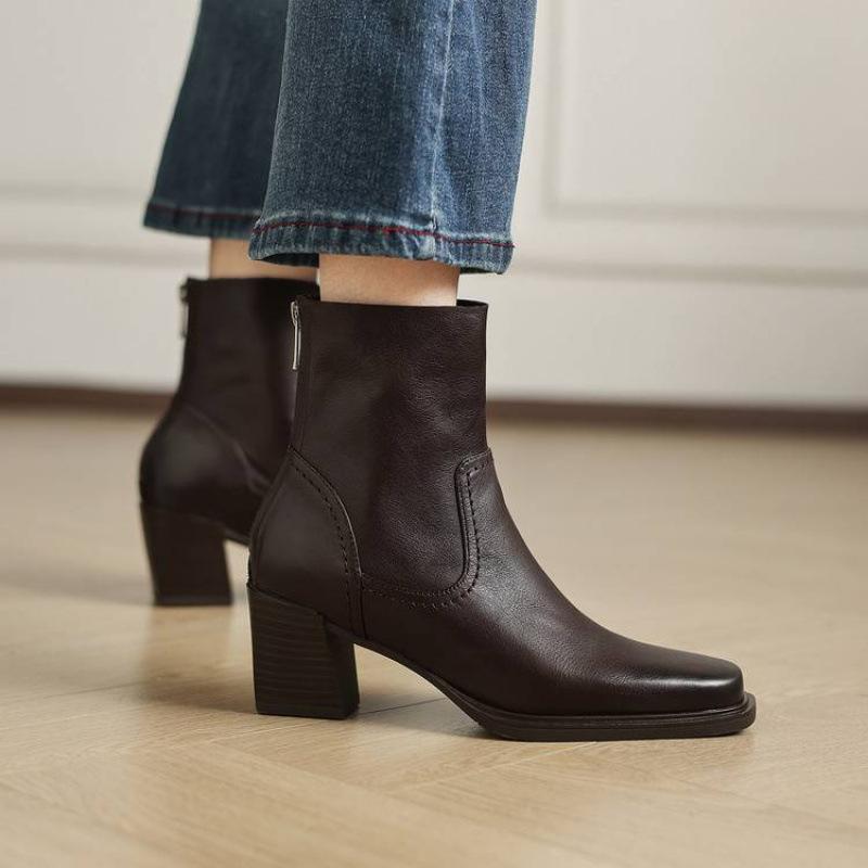 Neue Damen Lederstiefel mittlerer Absatz große Größe Damenstiefel bequemes Leder vielseitige Martin Stiefel Herbst und Winter Rindsleder mittelhohe Stiefel Damen