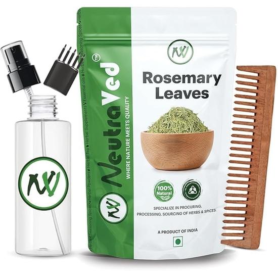 NeutraVed Rosmarinblätter 100G + Kamm-Applikator + Sprühnebel + Neem-Kamm|Know Quality Verpackter Zippbeutel, 100 Gramm