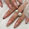 24 Stück Mandel-Press-on-Nägel mit Kleber Retro Rote Blumenmuster Französische künstliche Nägel für Frauen Einfache künstliche Nägel Tragbare Maniküre