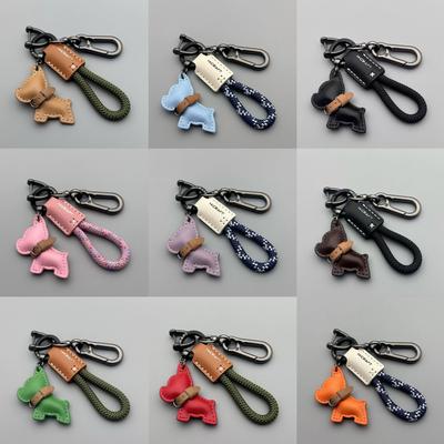 Französische Bulldogge Schlüsselanhänger Handgefertigt Echtes Leder Geflochtenes Seil Schlüsselanhänger mit Anti-Verlust-Riemen für Damen Herren Auto Schlüsselorganizer