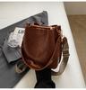 Big bag women 2025 new Korean versatile retro shoulder bag large capacity broadband messenger bag commuter bucket bag