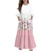 Mädchen Stufenkleid mit Rüschen - 3/4 Ärmel Taschen Maxi mit Taschen